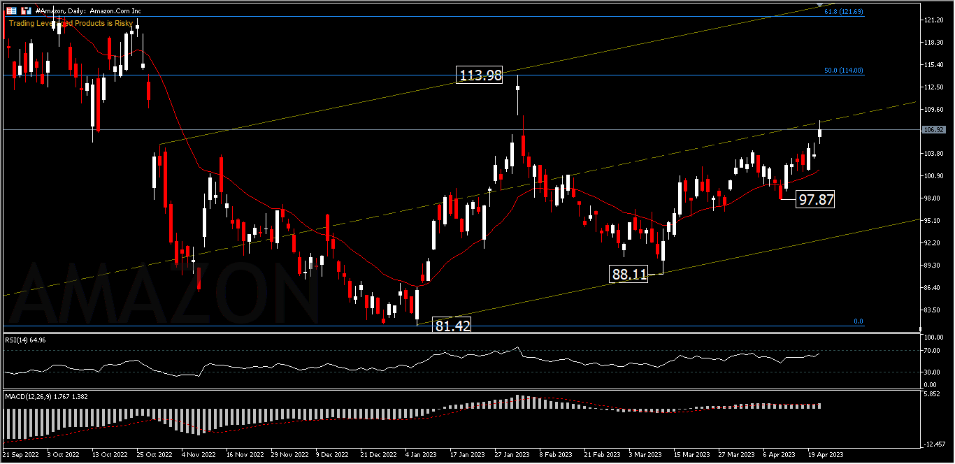 Amazon.com, Inc. is expected to report earnings on Thursday (27/04), after market close. The report will be for the fiscal quarter ending March 2023. Amazon’s revenue is expected to increase, supported by its thriving cloud computing division, subscription services and advertising business, despite declining e-commerce demand amid faster rising costs and shrinking margins. In Q1 2023, Amazon’s EPS is expected to decline for the seventh consecutive quarter. According to Zacks Investment Research, based on 13 analysts’ estimates, the consensus EPS estimate for the quarter is $0.21 with a stock rating of #3 (hold). The reported EPS for the same quarter last year was $0.21.