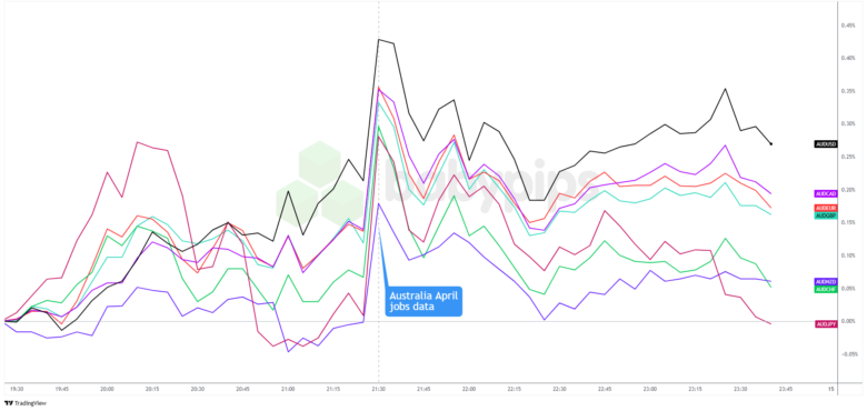 Data from the Australian Bureau of Statistics showed Australia’s labor market adding 89,000 jobs in April, far outpacing forecasts of a 20,000-22,500 increase.