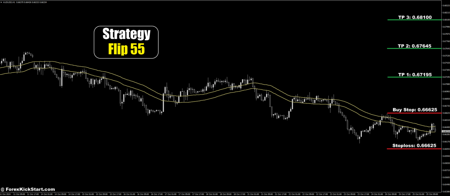 Currently, the Flip 55 strategy has identified a trading opportunity on the AUD/USD pair within the H1 timeframe. I’ve shared a trade setup image for your reference. The details of the trade are as follows: