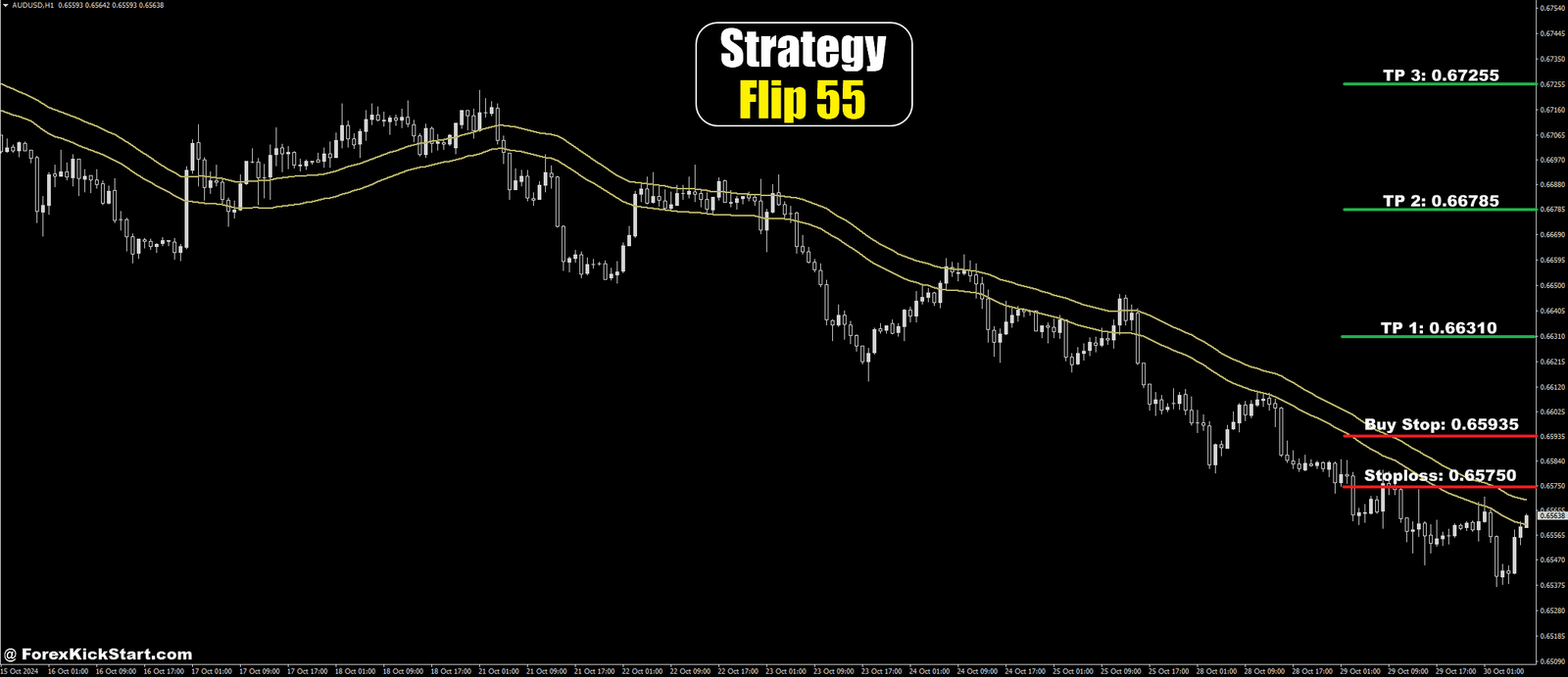 Currently, the Flip 55 strategy has identified a trading opportunity on the AUD/USD pair within the H1 timeframe. I’ve shared a trade setup image for your reference. The details of the trade are as follows: