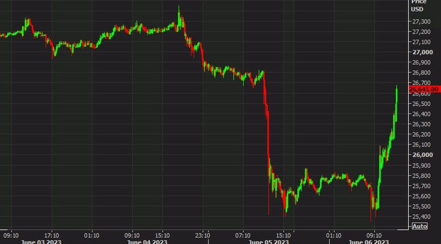 Bitcoin has nearly erased the rout from yesterday’s SEC charges against Binance and today’s suit against Coindesk.