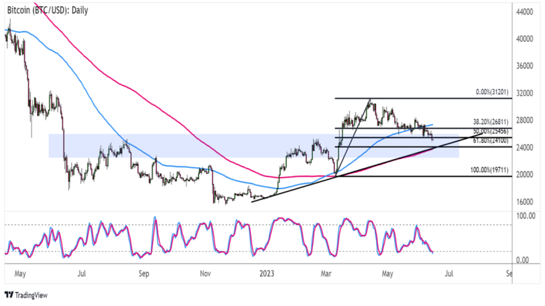 To top it off, the 61.8% retracement at $24,100 coincides with a short-term ascending trend line and the 200 SMA dynamic inflection point.