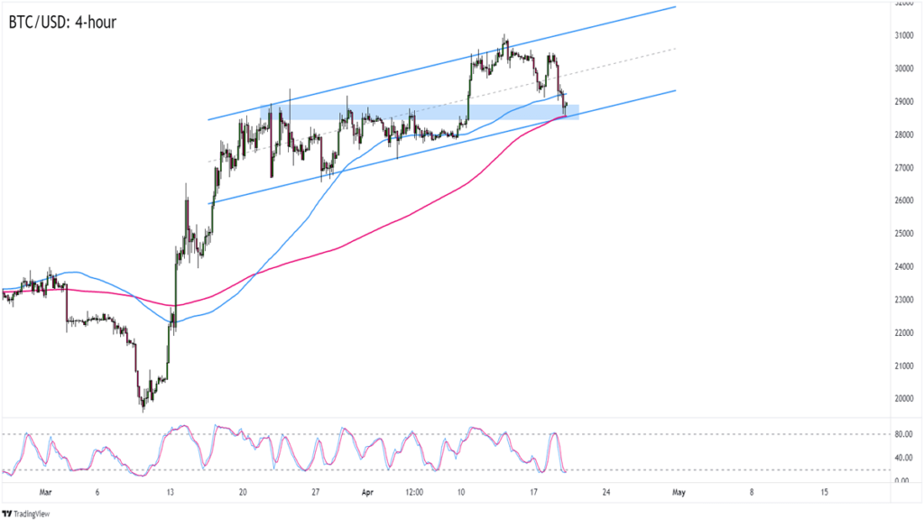As you can see, BTC is now trading closer to the $29,000 levels after briefly flirting with (and getting rejected at) the $31,000 zone.