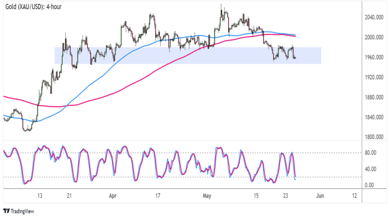 However, if the oscillator starts pulling higher, gold bugs might still return and allow another bounce back up to the nearby area of interest at $2,000.