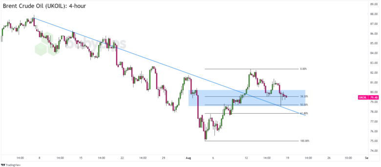 UKOIL is trading just above $79.00, which is in line with the 38.2% Fibonacci retracement of August’s biggest upswing. More notably, Brent crude seems to be finding support from a trend line resistance that the commodity busted through earlier this month.