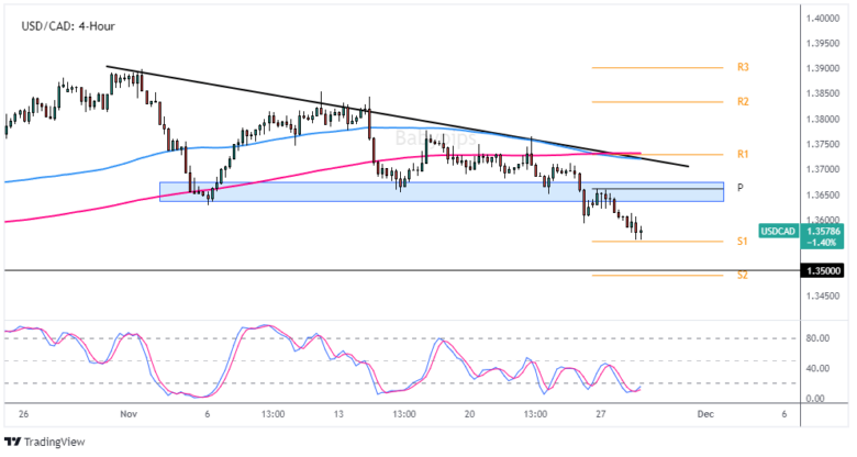 On the 4-hour chart above, we can see USD/CAD has been under selling pressure in November. But there were buyers holding the line pretty well between 1.3650 – 1.3700, before it eventually broke this past week.
