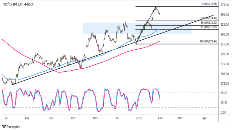 If any of the Fib levels are able to keep losses in check, Netflix shares could soon climb back to the swing high and beyond.