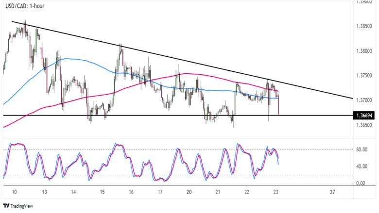 See those lower highs and support at the 1.3670 area on USD/CAD?