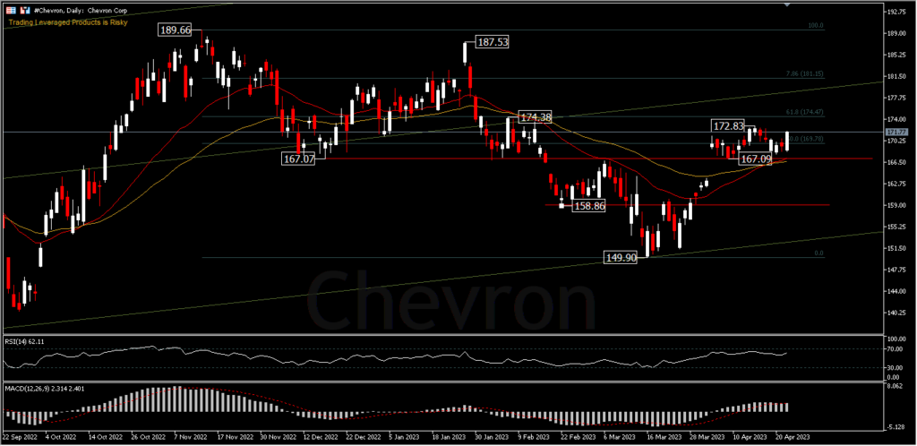 In its Q1 2023 report, analysts expect Chevron to announce earnings of $3.36 per share for the quarter, reflecting the current strong performance of the oil industry. The reported EPS for the same quarter last year was $3.36. This news follows Chevron’s recent announcement of a substantial quarterly dividend payment on 10 March, indicating strong performance and growth for the company.
