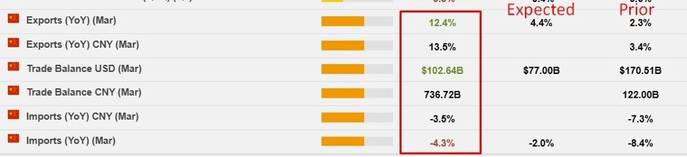 China Jan–Mar dollar-denominated exports +5.8% y/y, imports -7.0% y/y