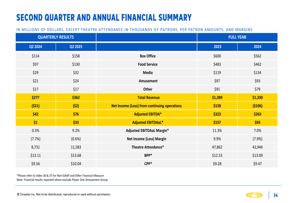 Share Facebook Twitter LinkedIn Pinterest Email Cineplex Q2 2025 slides: Mixed results amid continued recovery and diversification push Source link