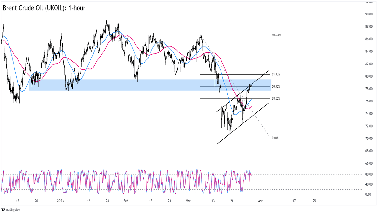 UKOIL is chillin’ near the 50% Fibonacci retracement of March’s downswing, which is relevant enough before we note that the $78 – $80 area was also a major support zone in 2023.