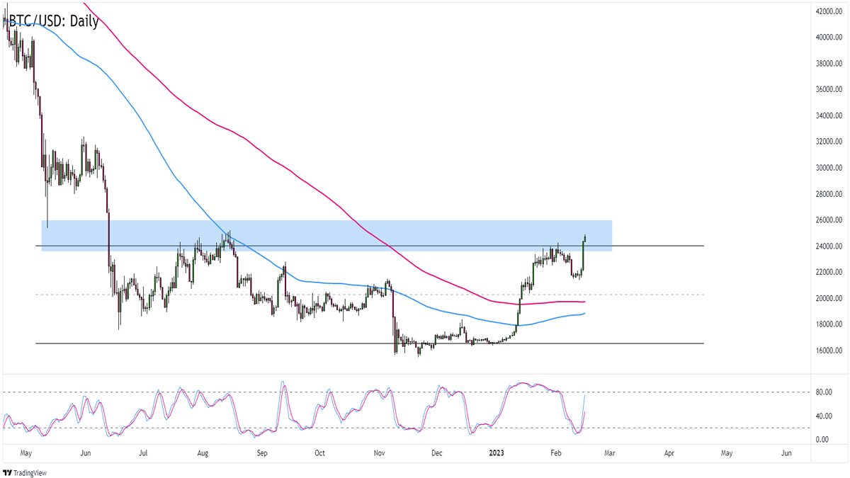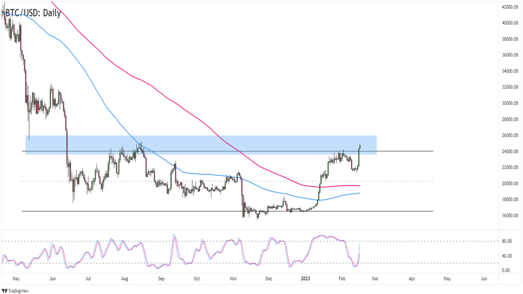 BTC/USD, which was chillin’ below the 22,000 mark, shot up above the 24,000 psychological handle and registered its highest levels since mid-August.
