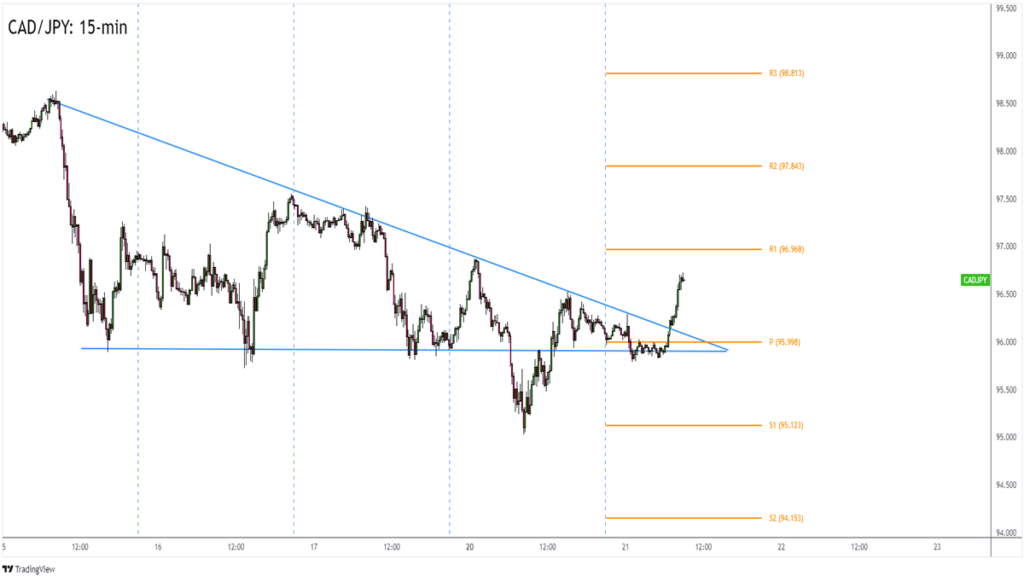 If today’s Canadian CPI report churns out higher-than-expected inflation numbers, then CAD/JPY could maintain its bullish momentum and retest higher levels of interest like 97.40.
