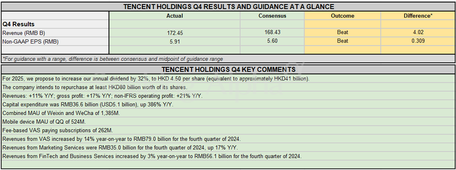 Earnings Snapshot: Tencent Q4 tops estimates; plans to raise dividend and initiates buyback of HKD80B shares