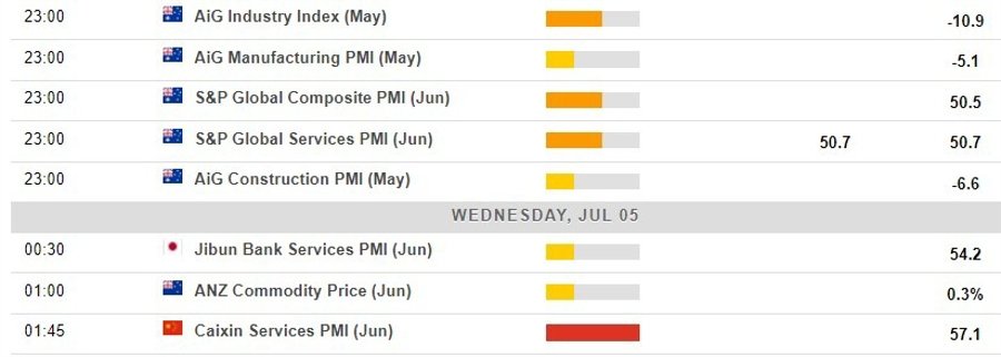snapshot from the ForexLive economic data calendar, access