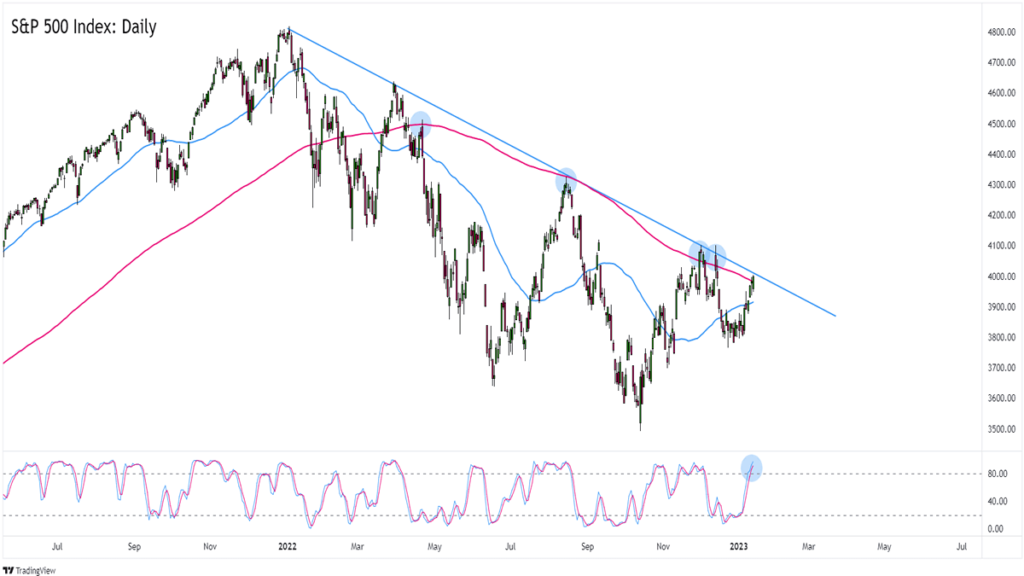 Uncle Sam’s S&P 500 stock index (SPX) started the year on a strong note, rising from a consolidation near 3,800 to trade closer to the 4,000 psychological zone.