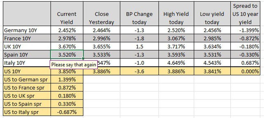 in the European debt market, the benchmark 10 year yields are modestly lower:
