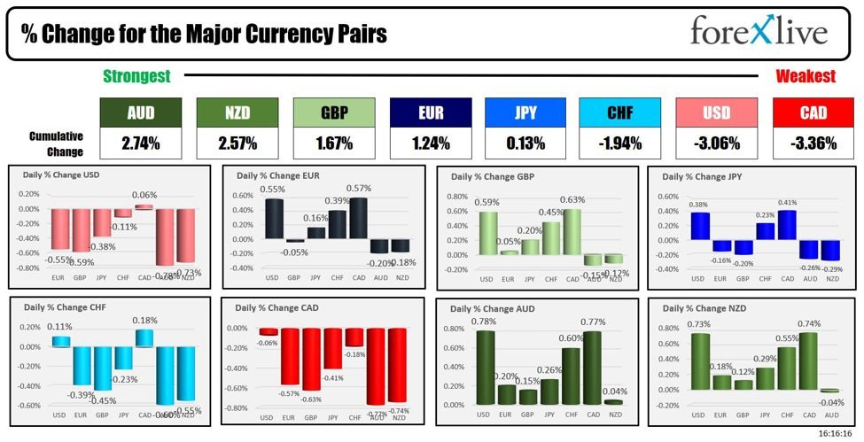 Looking at the strongest to the weakest of the major currencies, the Australian Dollar (AUD), New Zealand Dollar (NZD), and British Pound (GBP) outperformed, benefiting from the risk-on trade and the USD weakness.