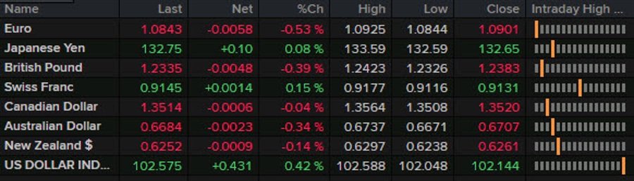 Cable was equally soft, falling 52 bps to 1.2330 with nearly all of that coming in the latter part of the day.