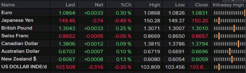 - US 10-year yields down 2 bps to 4.07%