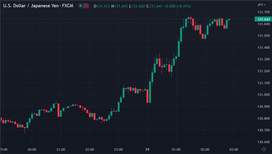 timezone here. From lows circa 130.80 its traded to highs just over