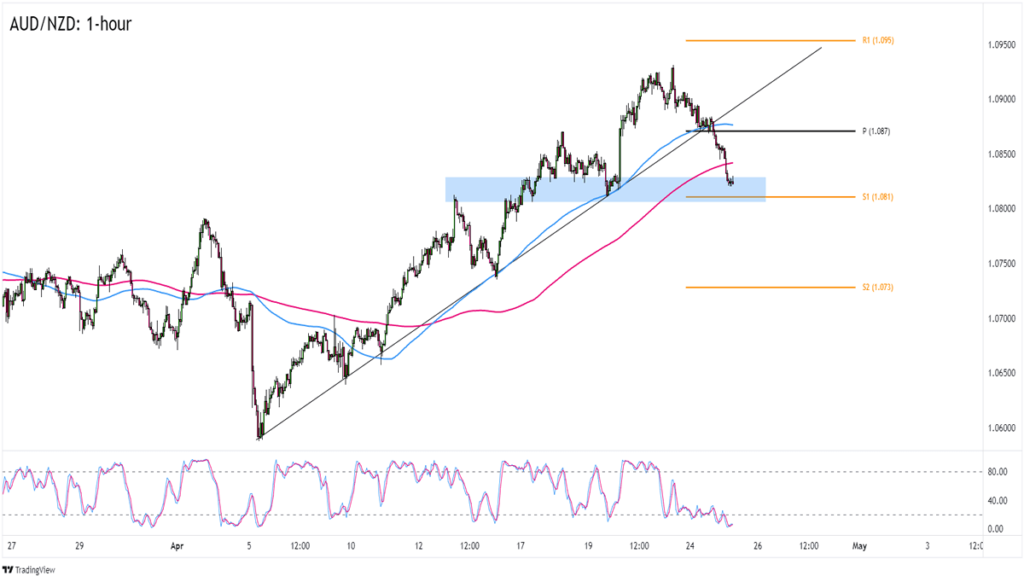 I’m eyeing the 1.0870 Pivot Point and 100 SMA levels as it’s also near the broken trend line support, but I’m not discounting some selling at the 1.0850 minor psychological level.