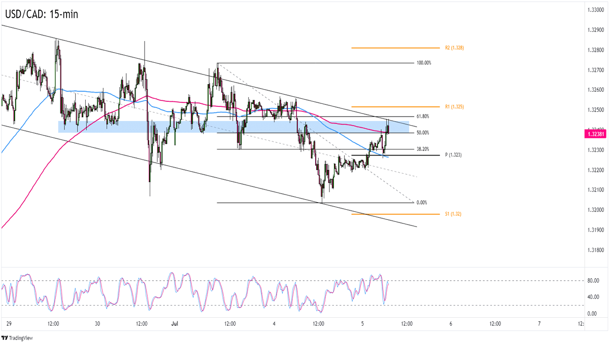 It also doesn’t hurt that USD/CAD’s current levels are not too far from the R1 (1.3250) Pivot Point level and the 200 SMA on the 15-minute time frame.