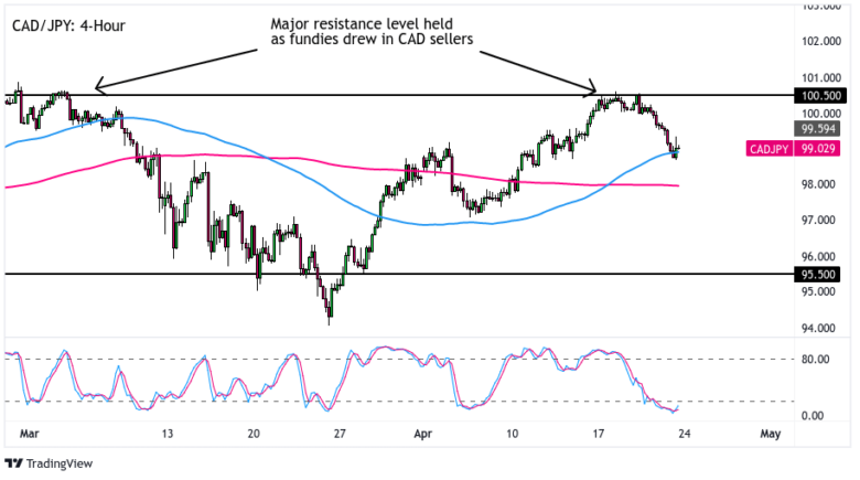 On Tuesday, we spotted a potential setup on CAD/JPY as its roaring March/April rally brought the pair back to its 2023 highs last seen in February.