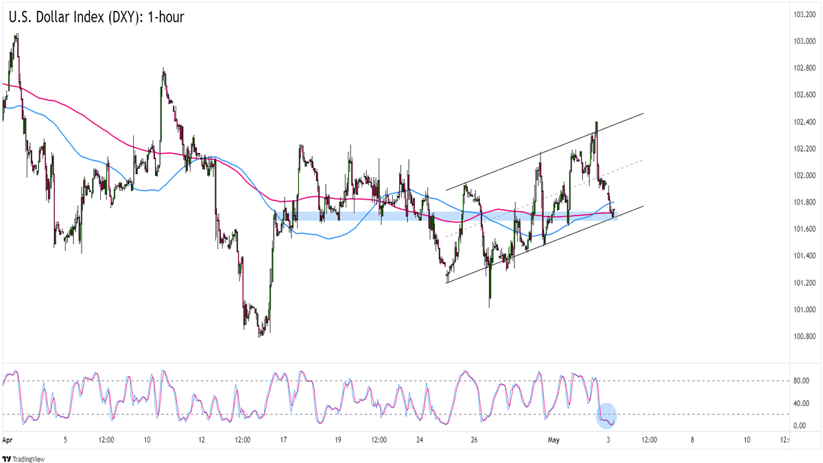 The U.S. dollar index (DXY), which hit 102.40 this week, is now trading closer to 101.75.