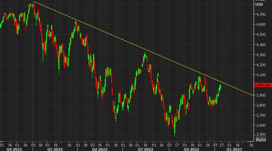 <p>S&P 500 futures fell by as many as 40 points in the premarket but the bulls steadied the ship and have slowly turned it around. The index is now up 15 points to a session high of 4018.</p><p>There's a year-long downtrend in the index that could soon be threatened.</p>