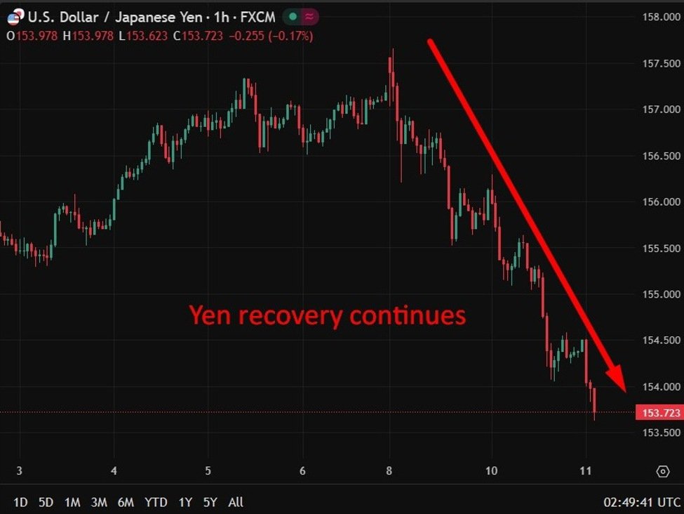 ING suggests that under this scenario the dollar could drift closer toward the 150 yen level. However, the analysts also flag that any renewed move higher in USD/JPY toward the 158–160 area would likely draw renewed yen buying interest. That zone has previously attracted attention from Japanese authorities, who have demonstrated a willingness to step in to curb excessive currency weakness.