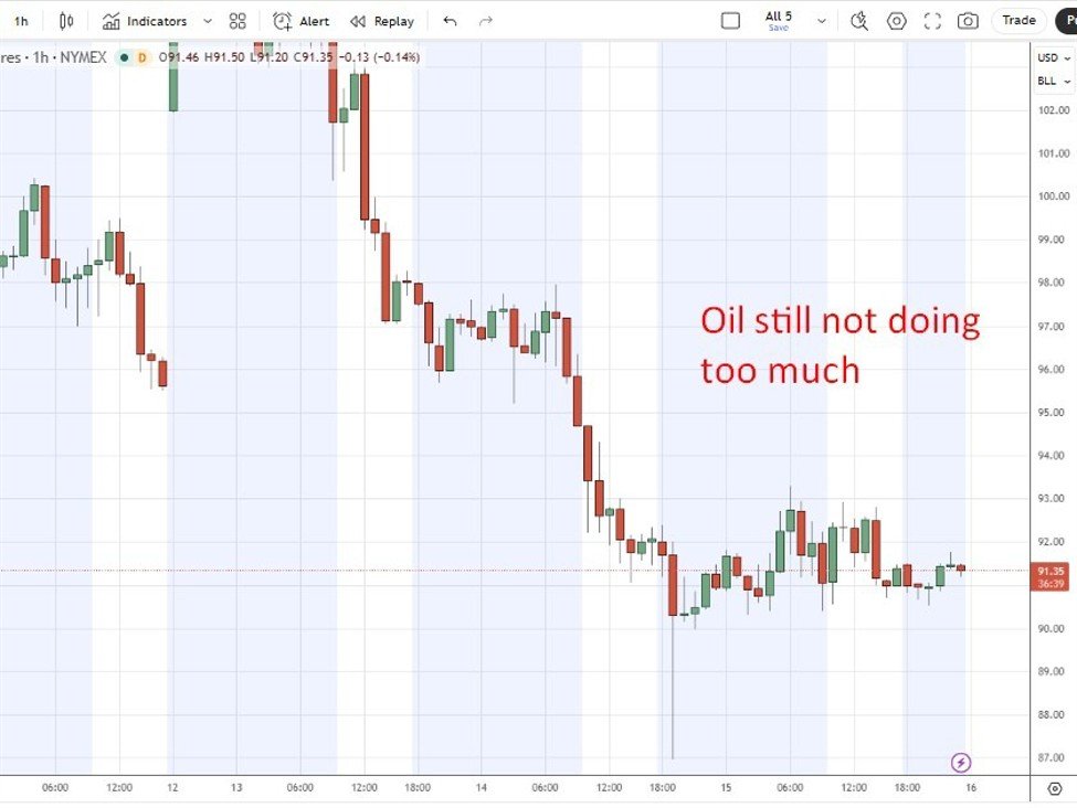 Oil markets traded in a relatively subdued range, suggesting some consolidation after recent volatility, even as supply risks tied to Hormuz disruptions remain unresolved.