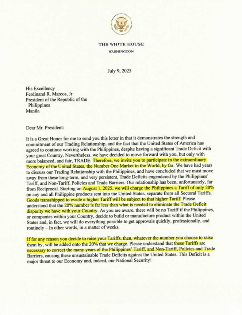 • 20% for Philippines. Goods transshipment to evade higher tariff will be subject to higher tariffs. The trade with Phillipines accounts for 0.4% of US trade.