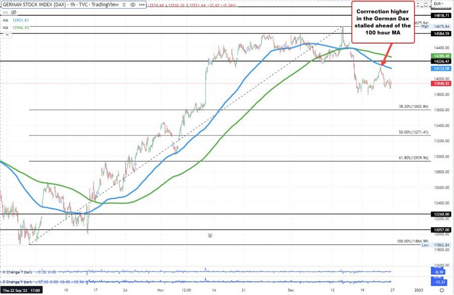 German Dax corrected up to its 100H MA on Thursday. Stalled.