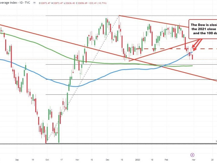The Dow is closing below close from last year and 100D MA