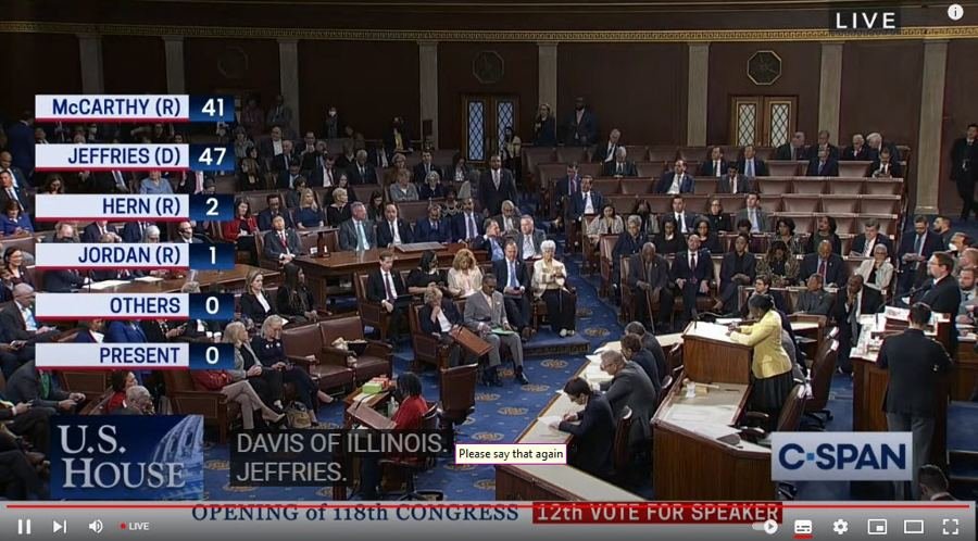 McCarthy still appears to lose the 12th nomination vote as 5 vote against McCarthy..