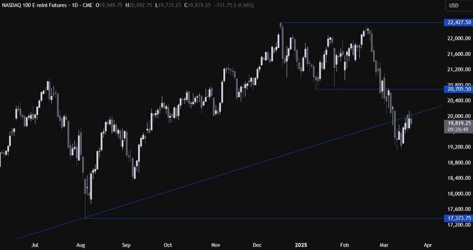 see that the Nasdaq eventually pulled all the way back to the broken trendline. The price has been struggling to