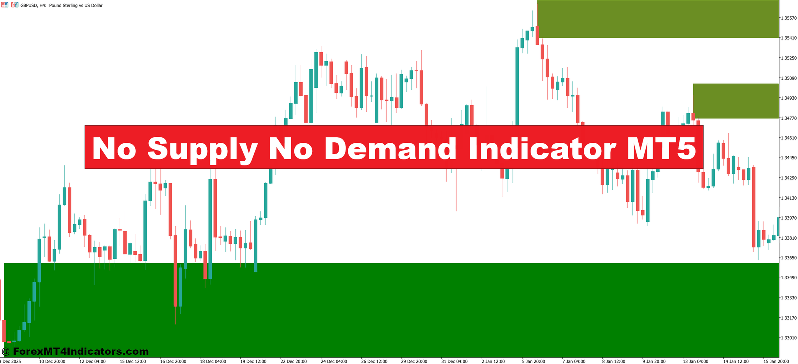The No Supply No Demand Indicator MT5 focuses on that missing piece. It highlights moments when the market shows weak buying or selling pressure. Instead of guessing, traders get visual clues about when volume dries up or when interest returns. This helps filter low-quality setups and improves timing around support and resistance. The next sections explain what this tool is, how it works, and how traders apply it in real charts.