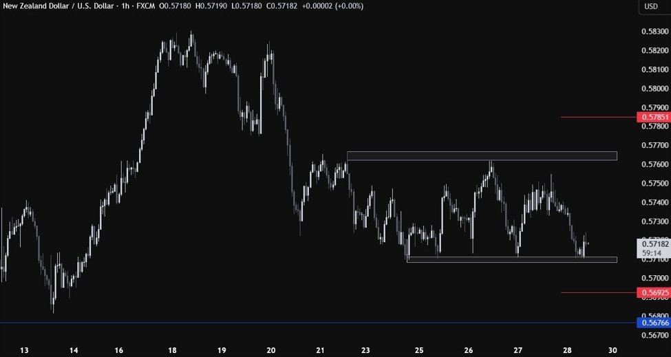 That’s what the market is focused on now and all the rest is just short term noise. That catalyst should lead to sustained trends. On the 1 hour chart below, we can see that the NZDUSD pair has just been bouncing around between the 0.5710 support and the 0.5770 resistance.