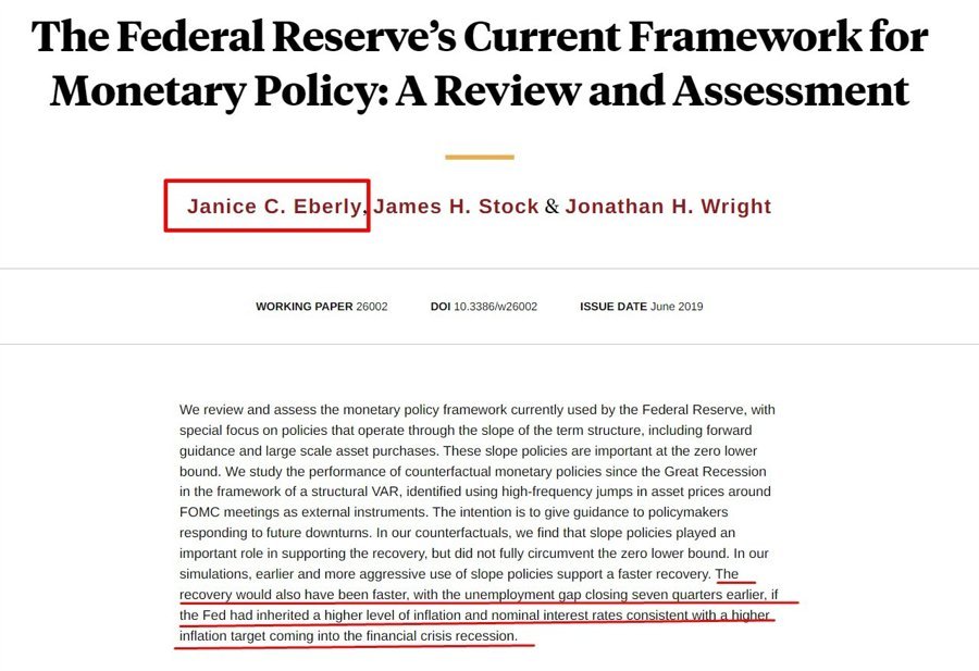 In 2019 Janice Eberly co-authored an academic paper saying that a 3% inflation