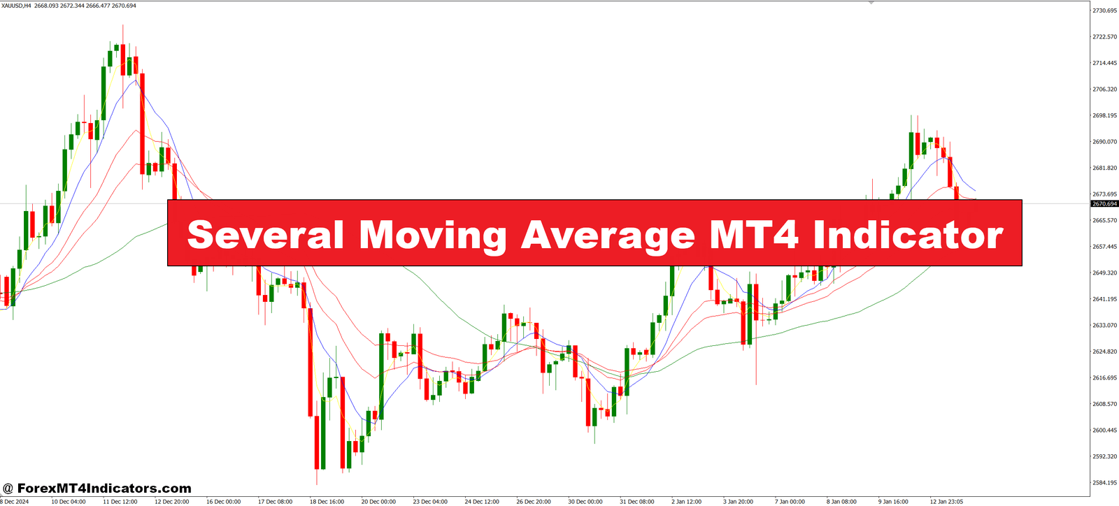 The Several Moving Average MT4 Indicator is a technical tool that displays multiple moving averages on one chart. These lines represent different periods, like short-term and long-term trends. By showing several moving averages together, traders can quickly spot the overall direction of the market and identify potential reversals. It’s a simple yet powerful way to keep track of momentum and trend strength in real time.
