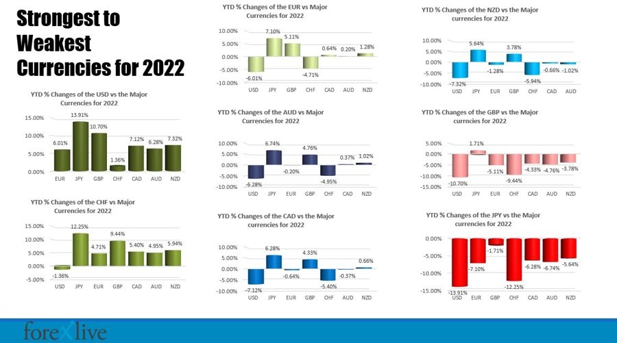 The 2022 year is in the books and the final rankings of the strongest to the weakest of the major currencies is showing the USD as the strongest and the JPY as the weakest.