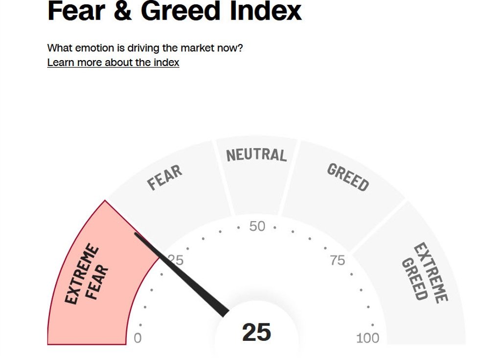 At times, the Fear & Greed index is a somewhat-useful indicator of market sentiment, particularly at extremes. But somehow it’s showing ‘extreme fear’ at the moment despite the S&P 500 being just 1.8% off the all-time high set just last week.