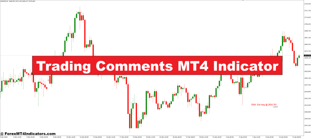 The Trading Comments MT4 Indicator is a user-friendly tool that allows traders to type and display custom text on their MetaTrader 4 charts. These comments can include anything—from reasons for entering a trade, to upcoming news events, or reminders about key price levels. The notes appear directly on the screen, so there’s no need to switch tabs or apps.