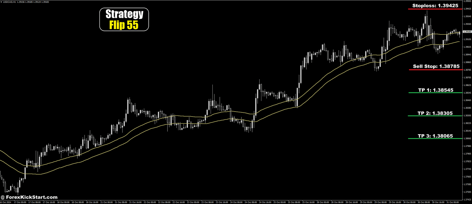 Currently, the Flip 55 strategy has identified a trading opportunity on the USD/CAD pair within the H1 timeframe. I’ve shared a trade setup image for your reference. The details of the trade are as follows: