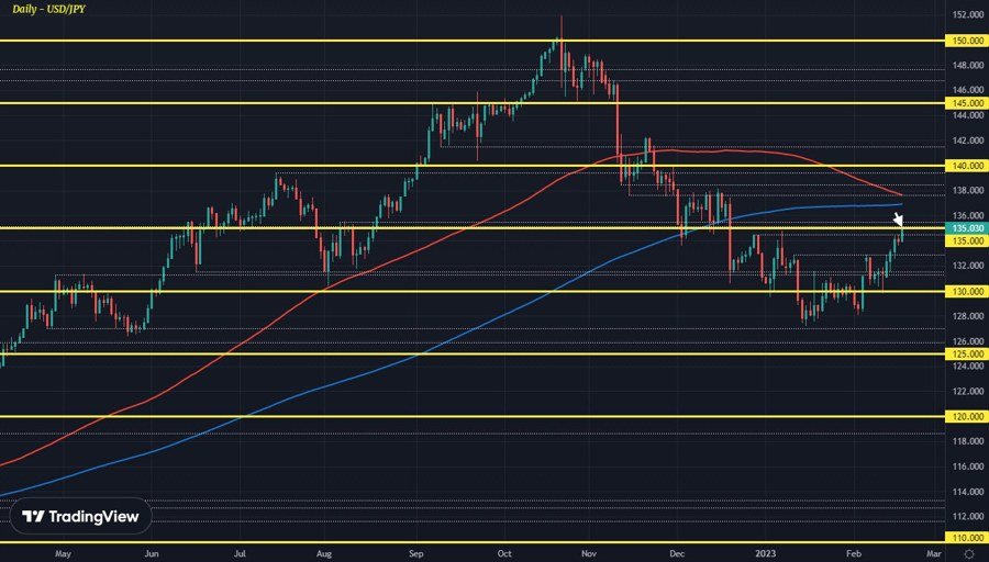 We are going back to a familiar theme in markets today, that being buy the dollar, sell everything else. This comes as we see traders digest the happenings this week and lean towards the possibility of a more hawkish/aggressive Fed. USD/JPY is now inching just above 135.00 as 10-year Treasury yields are threatening to move above the December highs of 3.90%: