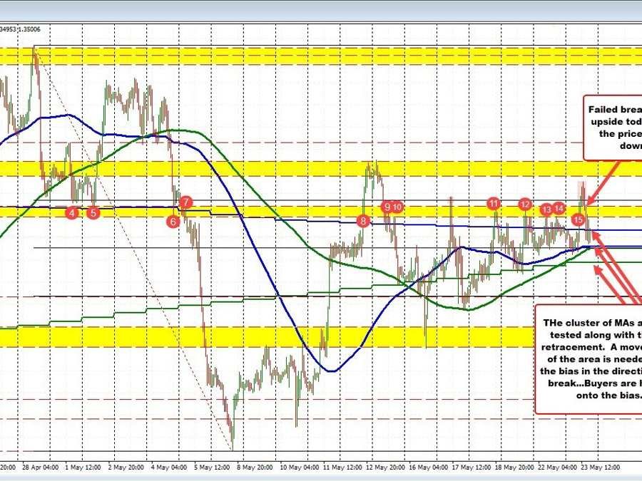 The USDCAD pair has been fluctuating and is moving back towards its daily low, inching closer to a critical confluence of support defined by several key metrics: a 100-hour moving average of 1.34918, a 50% retracement of the range since April 28 high at 1.34905, and a 200-hour moving average at 1.34902. The pair reached a low of 1.3494 in the North American trading session but found buyer support, with the current trading position at 1.3505.