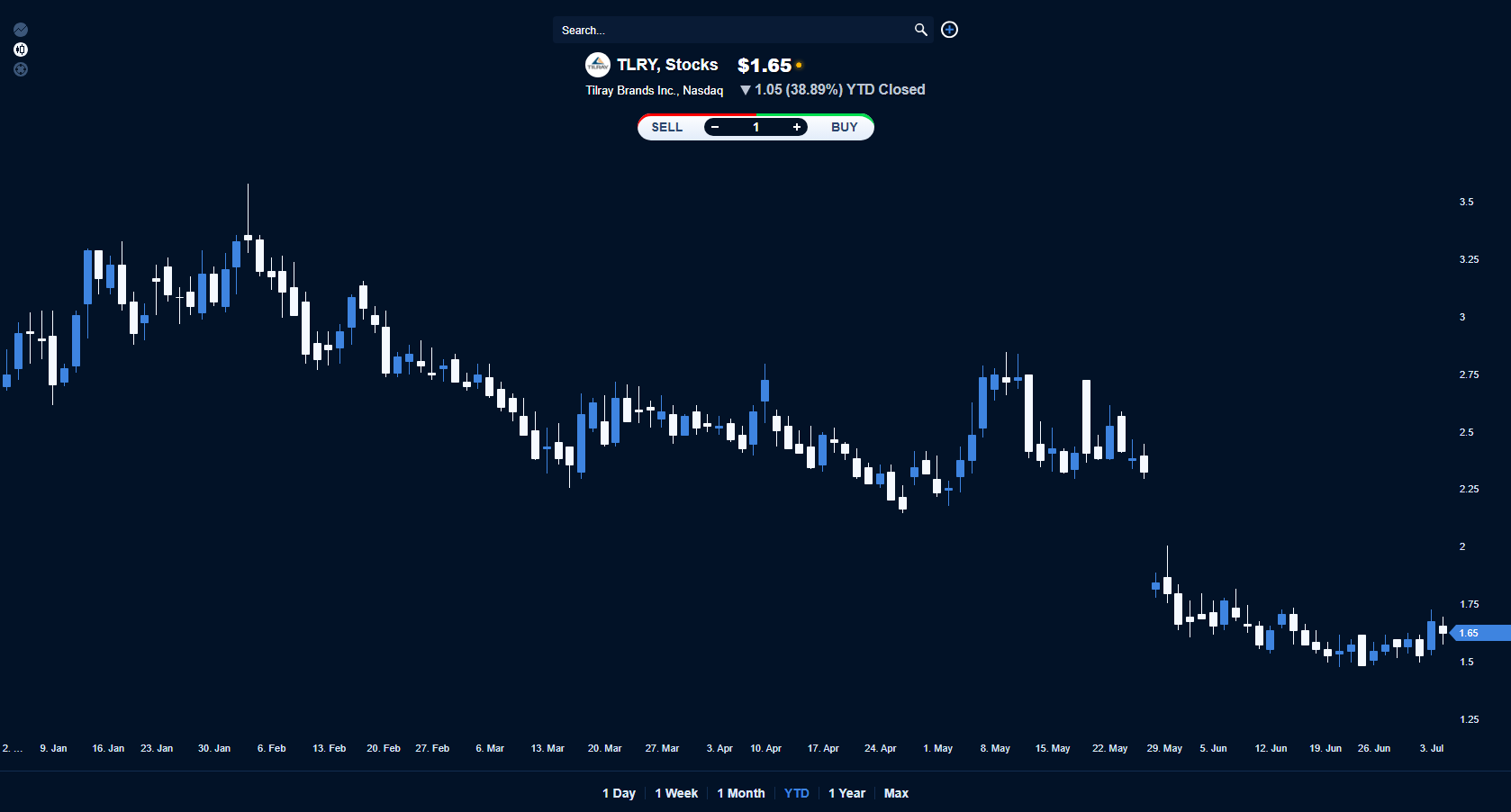 Looking at the TLRY’s chart, we can see that it is in a downtrend, and it was lastly traded at around $1.65.